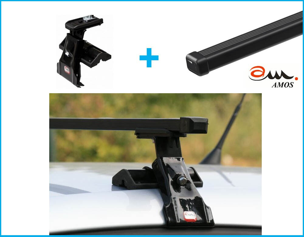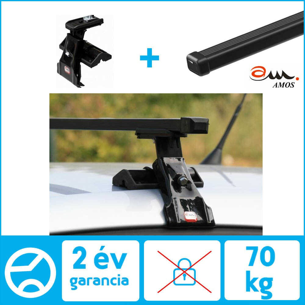 Amos Střešní nosič ocel pod střešní lem neuzamykatelný obsahuje 2 tyče a všechny díly, šrouby a montážní návod potřebný k montáži.